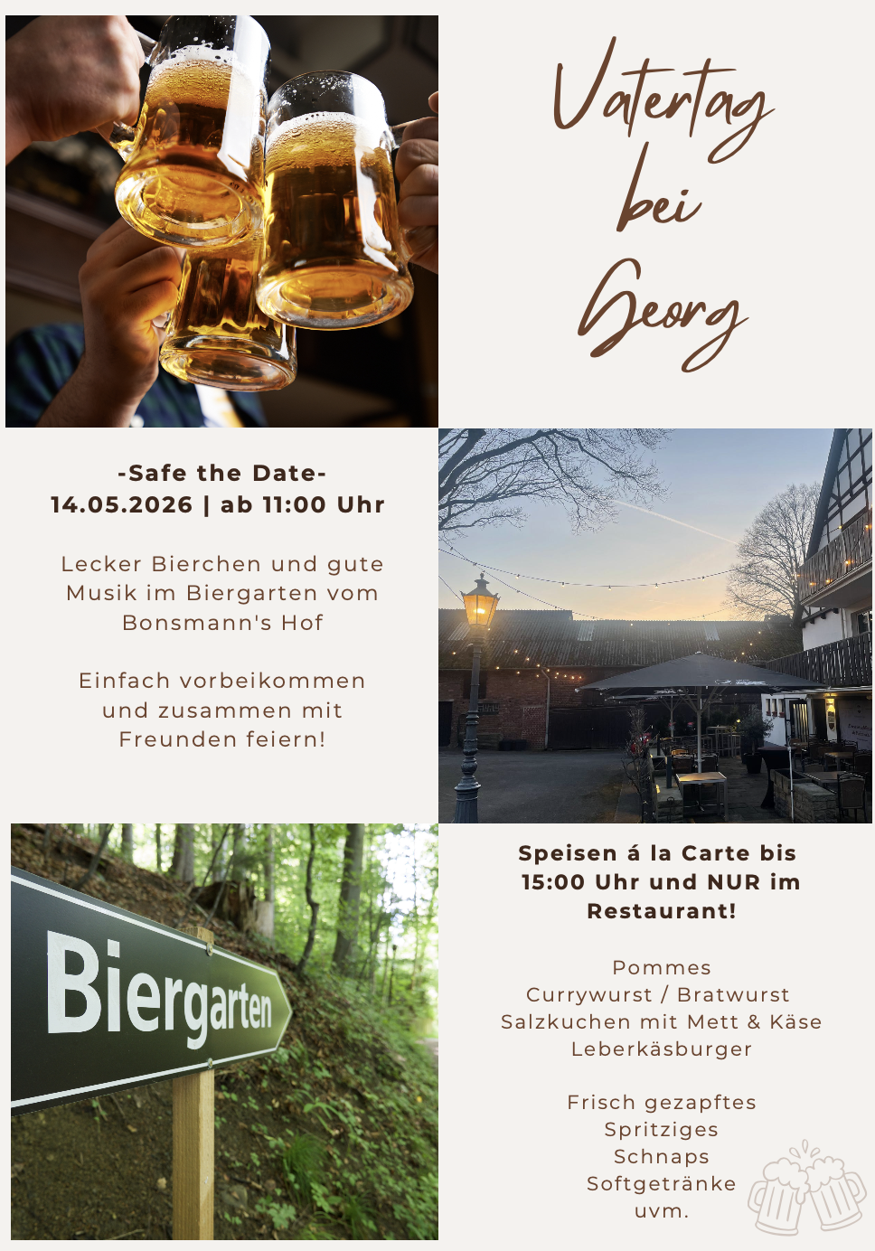 Am 24.04.2026 kommt Bruno Knust in den Bonsmann’s Hof! Unser 4-Gänge-Menü für 119,00 € inkl. Wein, Bier, alkoholfreien Getränken und bester Unterhaltung ist AUSVERKAUFT!